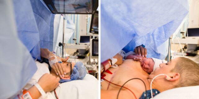 The powerful images show Crider, 28, before and during the birth — and the precious moments she shared with her husband post-delivery. Perhaps most striking is a photo of the new mother, who underwent a unilateral mastectomy, nursing Logan in her hospital bed — a large scar where her breast used to be, clearly visible.