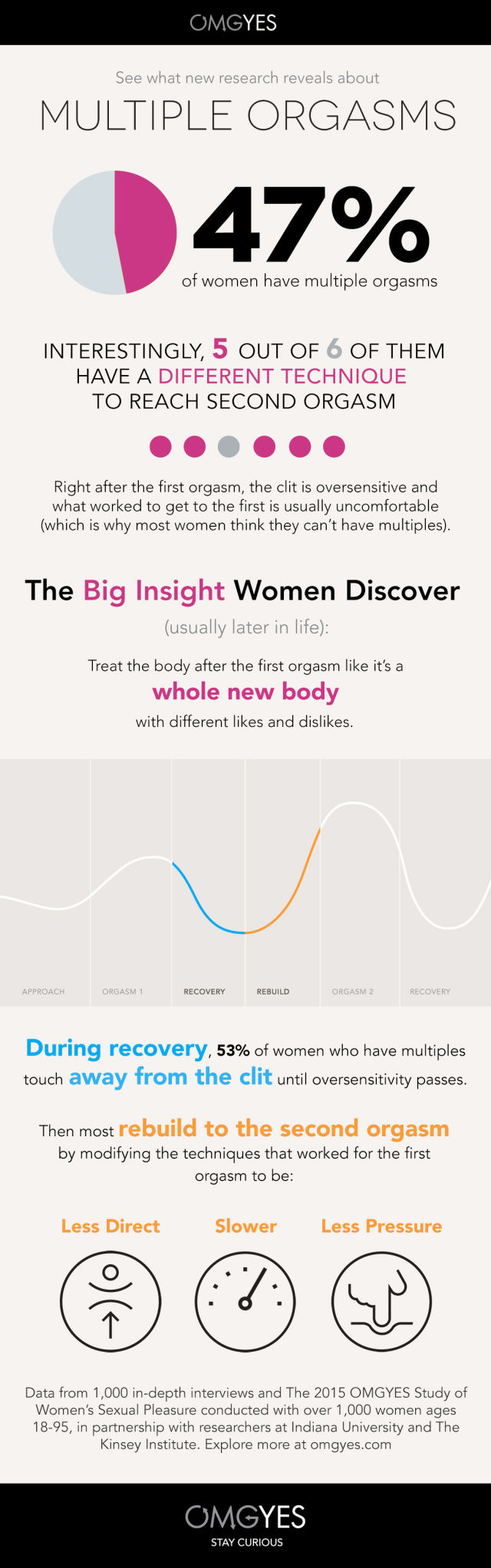 OMGYES, Indiana University, and the Kinsey Institute teamed up to deliver the most detailed information we have so far about how to achieve multiple orgasms. Through in-depth interviews with 1,000 women, and a nationally representative survey of an additional 1,055 women, OMGYES compiled what's basically a how-to guide for having mind-blowing multiples, backed up by IRL techniques from the women who have them. Consider this your Definitive Multiple Orgasm Bible. Best of luck to you all! Amen!