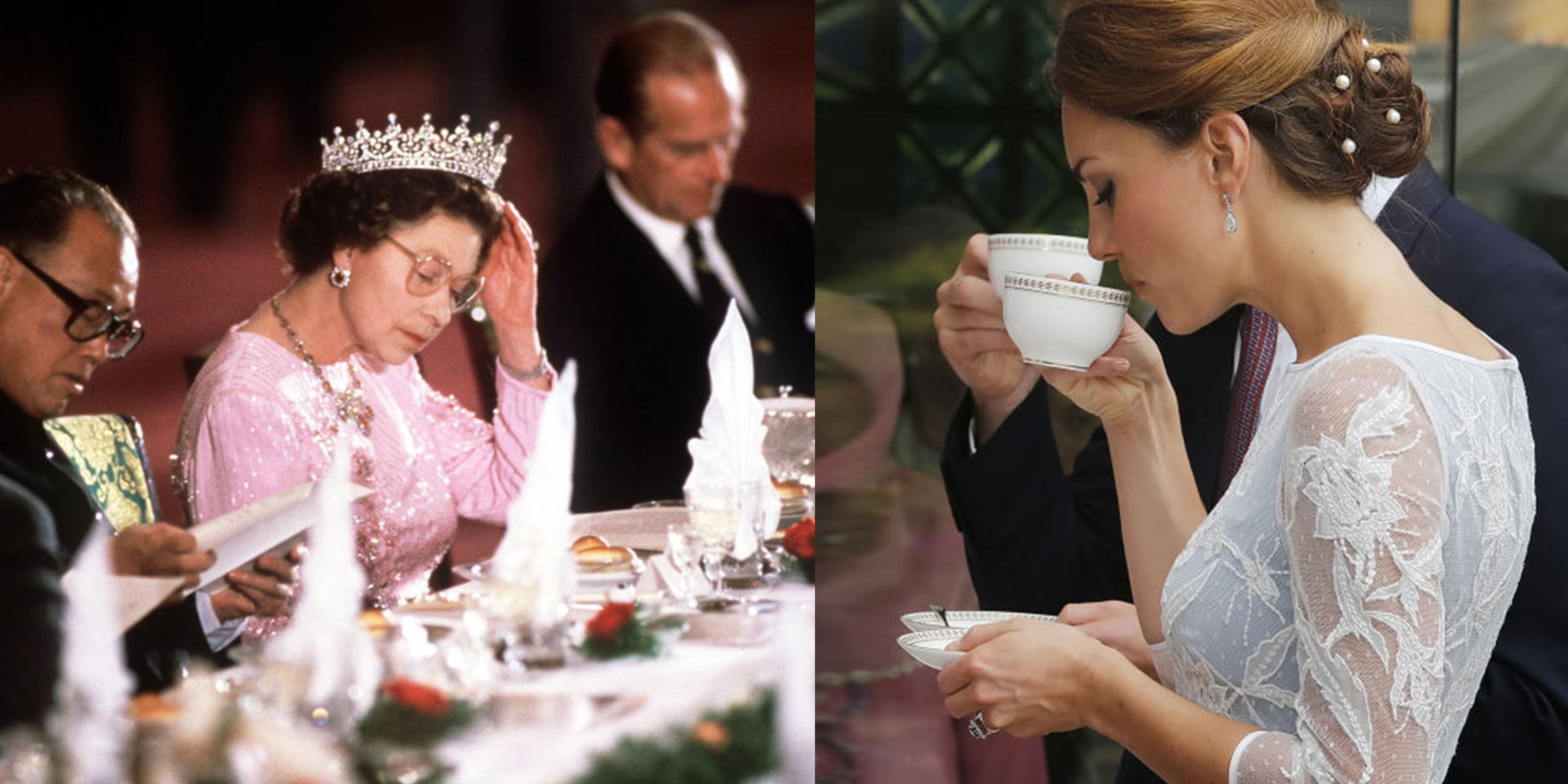 At dinner parties, the Queen begins by speaking to the person seated to her right. During the second course of the meal, she switches to the guest on her left.
