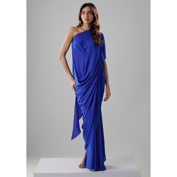 Na-Ka Electric Blue Double Georgette One-Shoulder Gown, ₹12,500 approx.