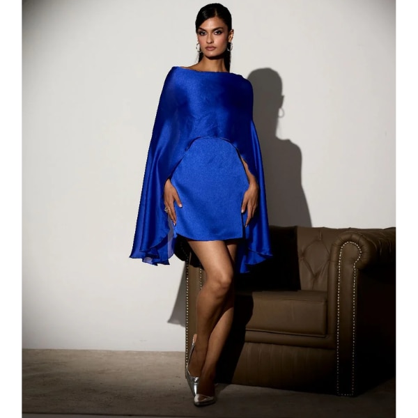 Lea Clothing Azure Electric Blue Cape Mini Dress, ₹3,390