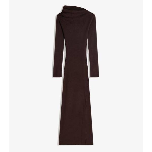 A warm-toned brown dress that hugs in all the right places. Style with chunky gold hoops, a cropped jacket, and platform boots or kitten heels for the perfect date night vibe.