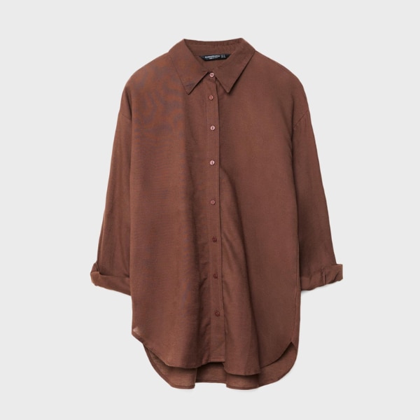 A structured chocolate-brown blazer instantly makes any outfit look polished. Throw it over a tank and wide-leg jeans for a clean-girl combo, or wear it with a black mini dress to make the brown pop.