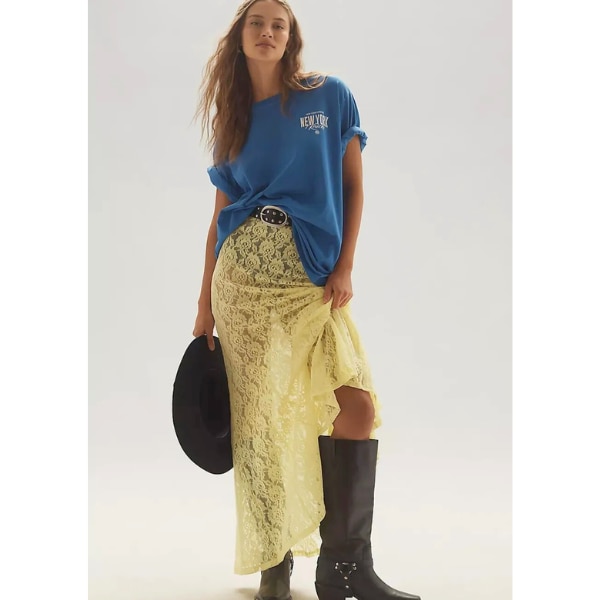 Lulu and Sky Yellow A-line Maxi Sheer Skirt, ₹5,680