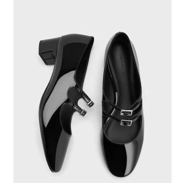 Charles & Keith Clementine Double Crystal-Buckle Mary Jane Pumps - Black Box, ₹9,999