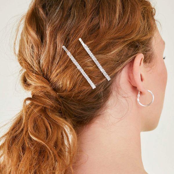 Accessorize London Silver Sparkle Diamante Hair Slides Set Of Two, ₹1,105