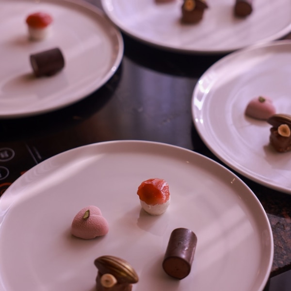 “The Bond" takes center stage as feelings settle into something more profound. A ruby chocolate shell filled with black mousse and lemon conserve reflects the sweet-and-sour realities of love, proving that true connection is intricate, multi-layered, and beautifully flawed.