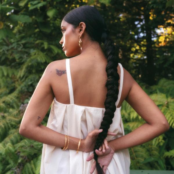 Farrukh wants to create a safe space, or a sanctuary for brown women to be seen and affirmed through her work. “I’ve always created work around womanhood or femininity regardless of your gender,” she tells us. “There’s femininity within all of us.” The 28-year-old is drawn to the quiet ways we relate to ourselves, each other, and the land we root ourselves in.