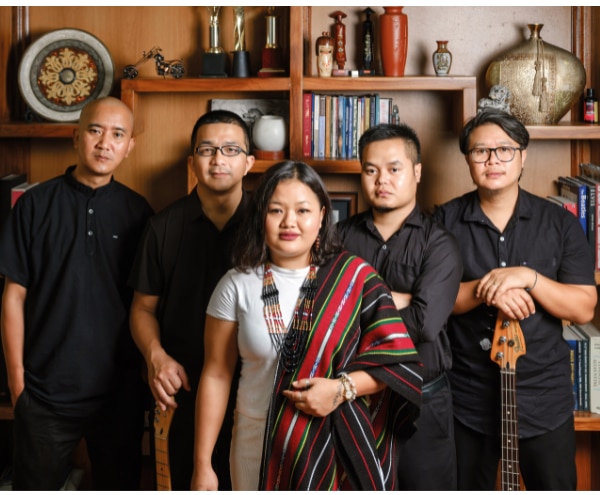 The vocalist approaches her music with a sense of reverence and maturity beyond her years. While the blues have their origin in African-American culture, Chali believes her Mizo identity brings a certain authenticity to how she approaches music. “When I perform, I am not just challenging the Blues traditions of America, but also carrying the musical spirit of my homeland and the experiences of growing up in the Northeast,” she explains. This is also reflected in the textiles and ornaments from the Northeast that Chali wears on stage, whether it’s the Mizo Puan (a handwoven, wrap-around skirt), a Khasi shawl, or a beaded Naga necklace. “I feel like I represent my state and the Northeast at large.” A part of that unique identity also comes from being in a band that has its members having lived all their lives in the same place—Chanmari, Aizawl—a neighbourhood that doesn’t just love their music but turns up in solidarity for every performance. And while Chali is the baby of the band, and refers to her much-older bandmates as ‘uncles’, the age gap has never really been a problem. Apart from Chali, Evenflow comprises rhythm guitarist Victor Sailo, guitarist and producer Ephraim Malsawma, bassist Kima Khawlhring, and drummer percussionist Eric Chenkual.