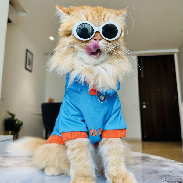 With 110k followers today, @plowythecat began as a way for Hitesh and Manisha Sharma to share her antics with friends and family who couldn’t get enough of her. As the couple often travelled with Plowy—whether on trains, in cars, or staying in hotels—they started documenting those journeys online. Soon, it wasn’t just her outfits that caught people’s attention, but the chaos of life on the road with a cat.