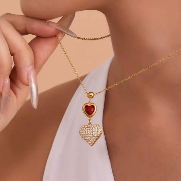 Minimalist yet expressive, this necklace hits the sweet spot between trendy and timeless. The dual heart charms in ruby-red and twinkling crystals add a soft romantic edge without feeling teeny-bopper. Lovely alone or layered, it’s gifting gold for picky recipients. Think “cool-girl jewellery with a subtle holiday wink.”
